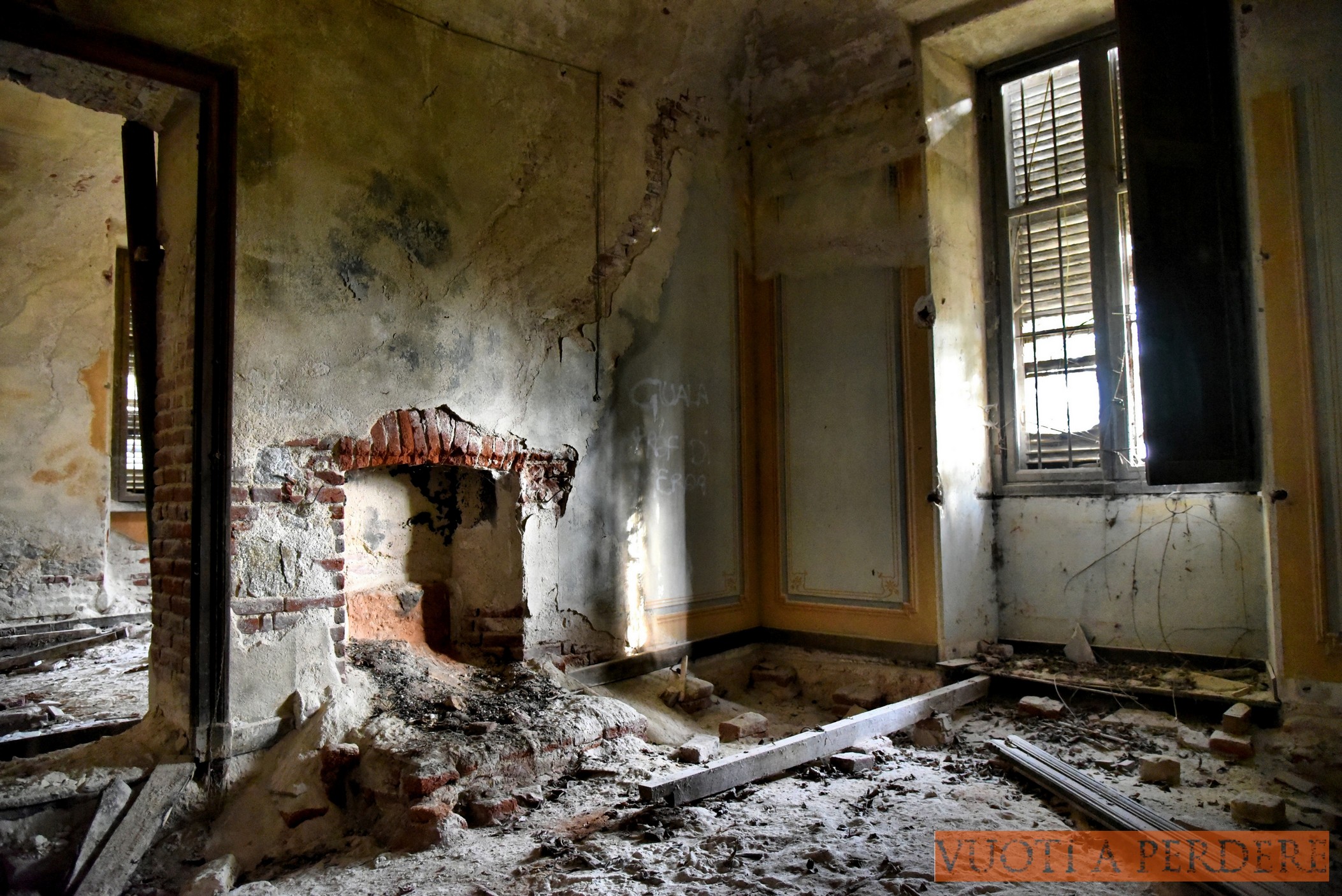 Una situazione molto diversa da quella che si si trova davanti oggi. Dell’antica, signorile dimora non restano che quattro muri. Villa C. è stata depredata di tutto: mobili, oggetti (fin qui niente di incredibile), pavimenti, camini (!), finestre, addirittura porzioni di muri sui quali c’erano gli affreschi. Addirittura è stato rubato per intero lo scalone che portava al piano superiore, ora raggiungibile soltanto con l’aiuto di una scala a pioli portata lì da chissà chi. Villa C. conserva il primato, oltre chi di casa infestata, di abitazione più vuota e scarna dell’intera provincia. Ladri e furbacchioni hanno sfruttato la posizione isolat(issim)a dell’immobile per fare i propri comodi indisturbati. Lo hanno fatto per una settantina d’anni, e questo è il risultato.